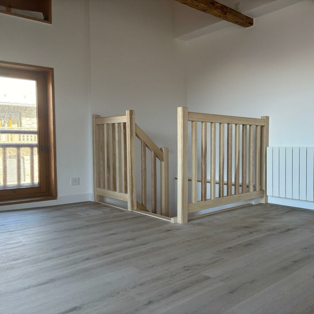 Dans cet appartement en duplex, HUMATEC a mené une rénovation complète visant à améliorer les usages et le confort au quotidien. L’intervention s’est concentrée sur la reprise des éléments structurants, notamment avec la réalisation d’un nouvel escalier en frêne massif, pour remplacer l’existant trop raide et peu sécurisé.