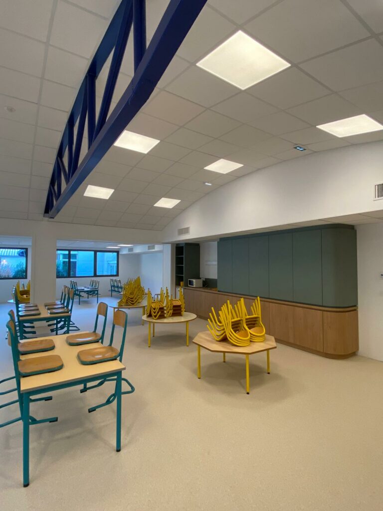 Pour l’extension de l’école et de la cantine de Challes-les-Eaux, HUMATEC a piloté l’ensemble des interfaces chantier grâce à une mission OPC complète : coordination, planification et optimisation du déroulement des travaux (Gros œuvre, peintures, sols souples, plafonds, mobilier sur mesure…).